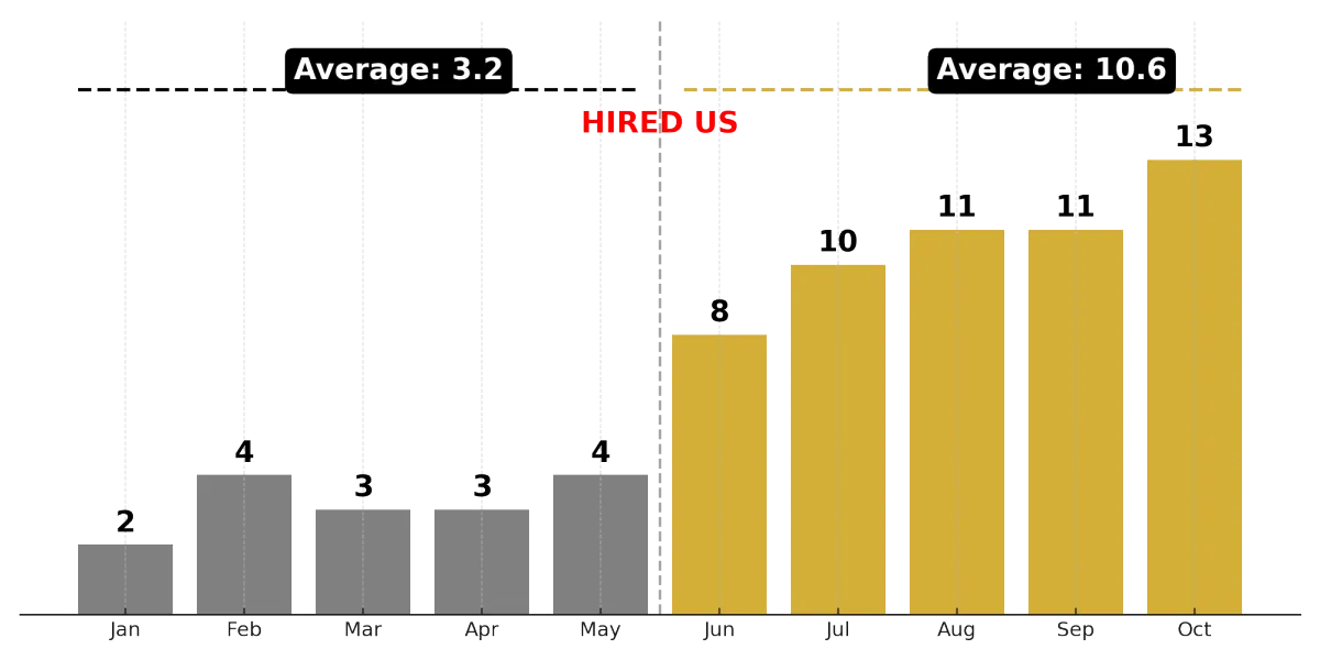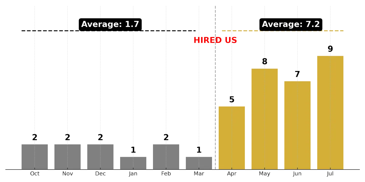 Recently, one of my clients — who was averaging 2 new clients per month — signed 8 new clients in one month.